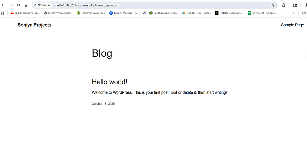 Provisioned an internet-facing ALB across two AZs with a target group registering both app servers. Completed WordPress configuration, updated site URLs to the ALB DNS, verified health checks, and removed the temporary bastion.